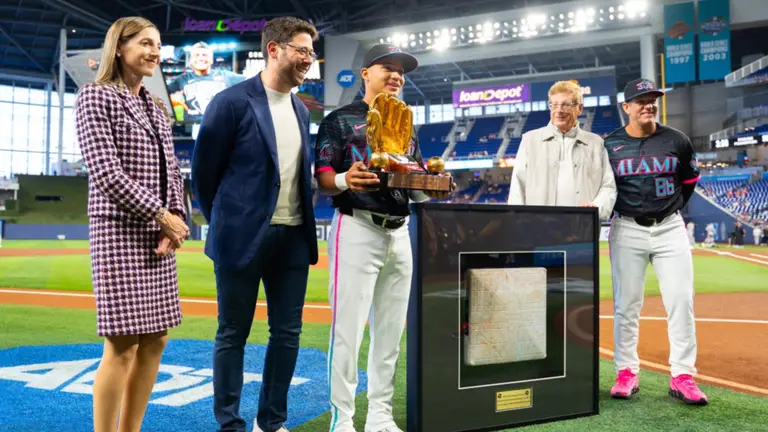 Ya para este sábado, la franquicia le organizó un homenaje a pie de campo previo a la voz de playball, donde recibió tanto el Guante de Oro que ganó como utility el año pasado, como la base que se robó en la final del Clásico Mundial en el propio LoanDepot Park.