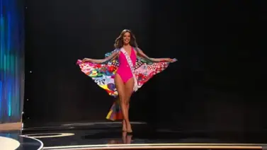 La Miss Venezuela en este desfile lució una capa que fue pintada por la ilustradora venezolana Gabriela Camuñas y ell diseño busca concientizar sobre la lucha contra el abuso infantil.