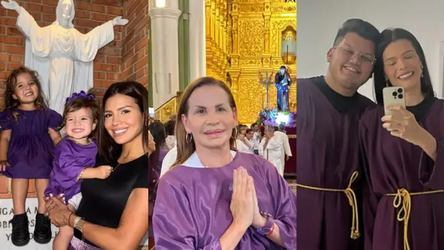 La joven actriz Karlis Romero, estuvo acompañada de sus dos hijas Bella y Ciela, a quienes vistió de morado. “Gracias mi Nazareno por permitirme ir ante ti otro año más, gracias por ellas y por todas las bendiciones que me das que tengan una bonita semana santa”, publicó en su red social.