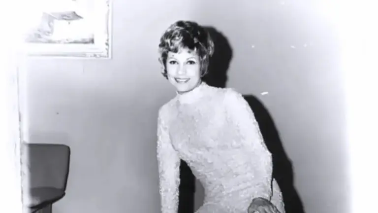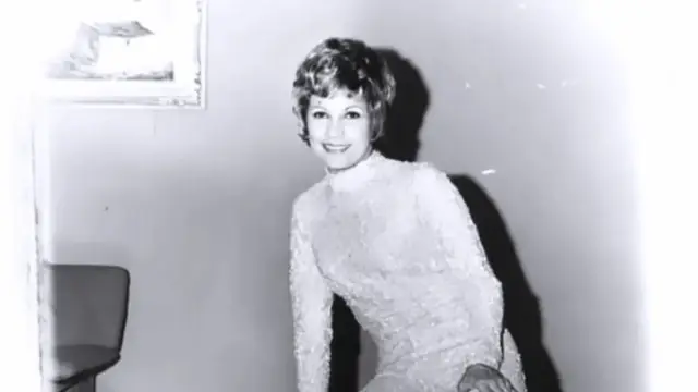Mirla aparece muy sonriente con labios rojos, camisa de rallas blancas y azules y perlas, que la hicieron lucir radiante.