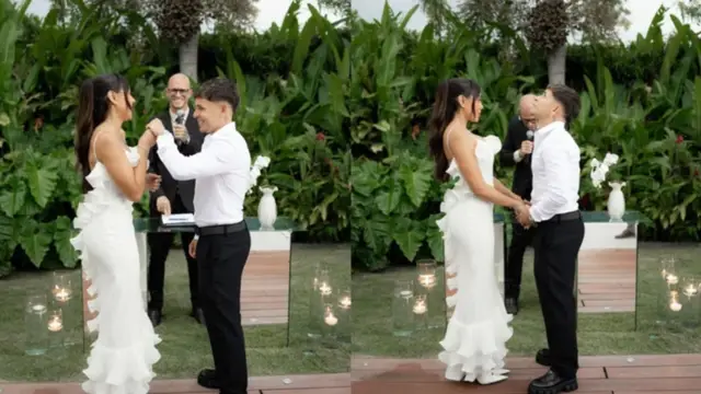 Con postales de la boda por el civil, la pareja celebró su unión. Las fotos muestran a los recién casados frente al altar para dar el “sí, acepto”; además, acompañaron la imagen principal con detalles de sus vestuarios, celebración, el anillo y la hermosa familia que han construidos juntos.