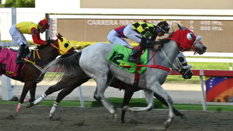Essencial White (número 9) participa en esta prueba válida, bajo el entrenamiento de Henry Trujillo para los colores del Stud M.M., además de contar con la conducción del jinete aprendiz Julio Moncada.
