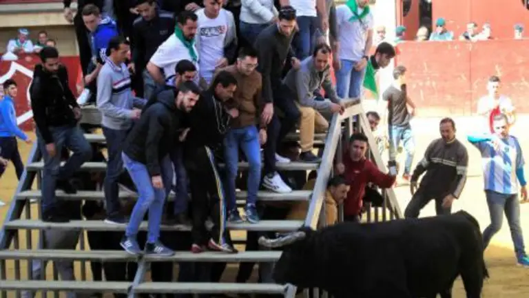Este peculiar "encierro" consiste en la suelta de toros durante tres horas del Domingo de Resurrección, en las que los animales son golpeados, mojados por la gente y sufren caídas por la cera derramada durante las procesiones de Semana Santa. EFE