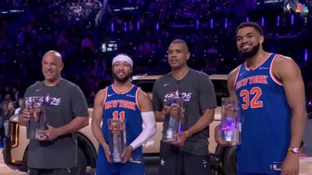 El trío, conformado por la estrella actual Jalen Brunson, el pívot Karl-Anthony Towns y la leyenda de la franquicia Allan Houston, finalizó con un total de 47 puntos. La clave del triunfo llegó en un cierre frenético donde Brunson y Houston encestaron tiros consecutivos desde la media cancha, revirtiendo una situación que parecía favorecer a sus rivales.