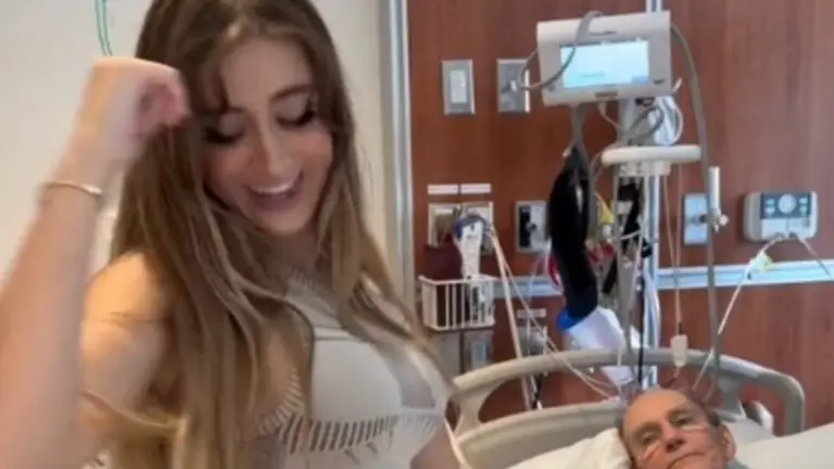 Aurora quiso unirse a un trend de TikTok y no vio otra opción sino la de hacerlo en la habitación del nosocomio donde se encuentra su novio, lo que por supuesto causó indignación al público. La creadora de contenido añadió un texto en el video en el que afirma estar incluida en el testamento del caballero.